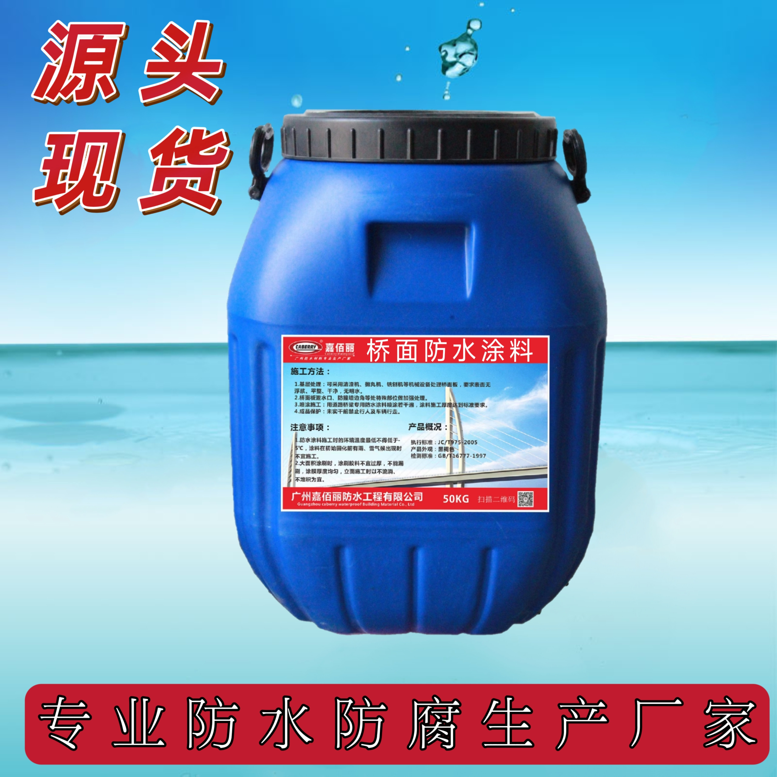 核心卖点:国标 JC/T975-2005,二阶反应型,高粘高弹、抗裂耐候,路桥专用防水粘结一步到位。
